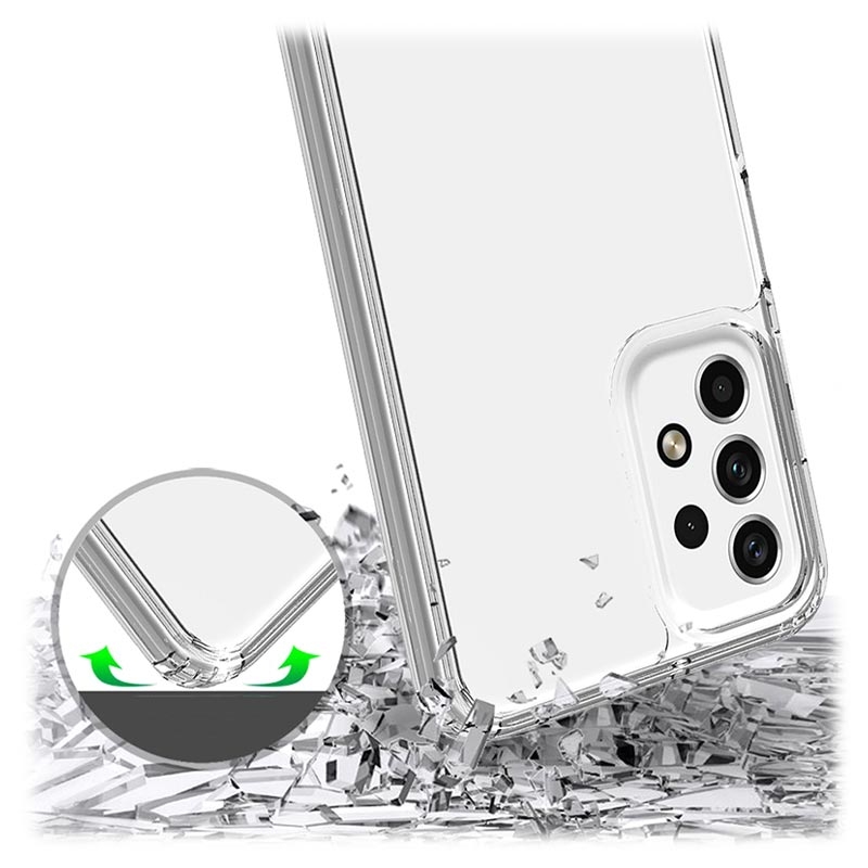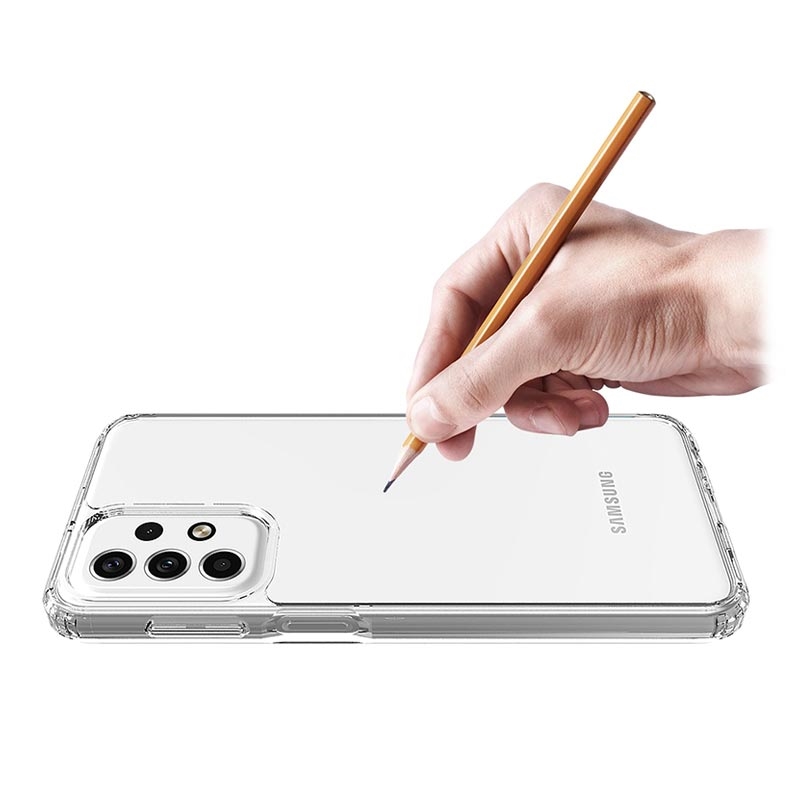 Ikke skjul skjønnheten til din Samsung Galaxy A23 5G! Et gjennomsiktig deksel gir deg en klar oversikt over enhetens farge og design, samtidig som den beskytter mot riper, støt og støv. Forsterkede hjørner beskytter Samsung Galaxy A23 5G mot fall med doble beskyttelsesmaterialer. Lett og slank design, dette dekselet er perfekt for lommene eller posene dine. En kombinasjon av materialer føles bra i hånden og sikrer grepet. Akryldekselets bakside gir ekstra beskyttelse for Samsung Galaxy A23 5G, noe som gjør den sikker mot riper, fingeravtrykk og støv.