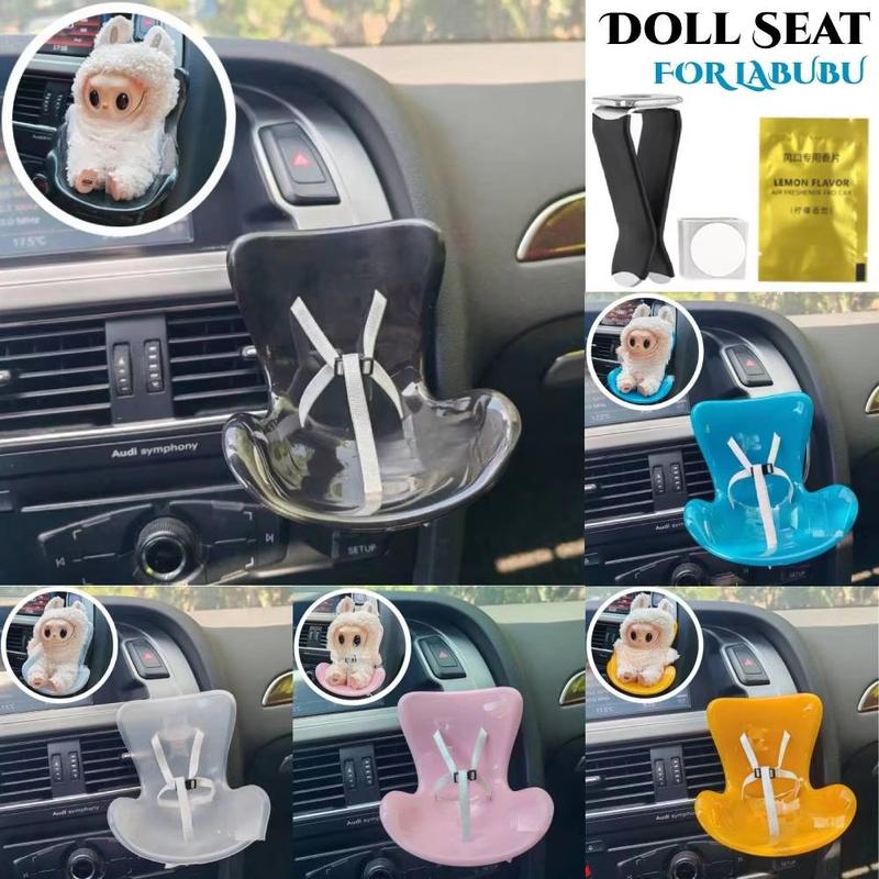 Labubu Mini sikkerhetsbilsete - Klipsfeste for billuftventil for 17cm plysjfigurer, innebygd sikkerhetsbelte, interiørdekor