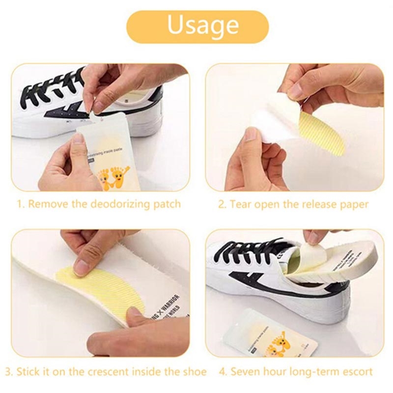 Skyv et av disse ultratynne deodoriserende klistremerkene inn i skoen eller trykk det på sålen på sokken, og glem gjenstridig lukt i opptil sju dager. Når kroppsvarmen øker, aktiveres naturlige planteekstrakter som nøytraliserer svettelukt før den sprer seg.