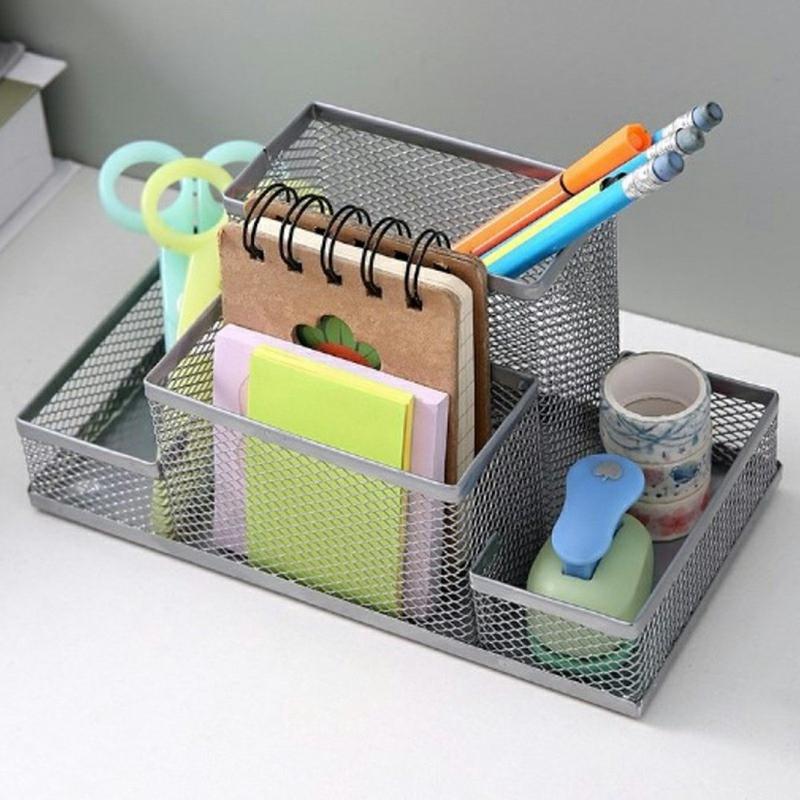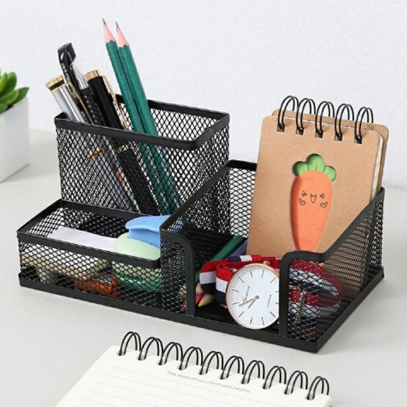 Skrivebordsorganisator i metallnett med 3 rom - ryddig arbeidsplass, øyeblikkelig stil