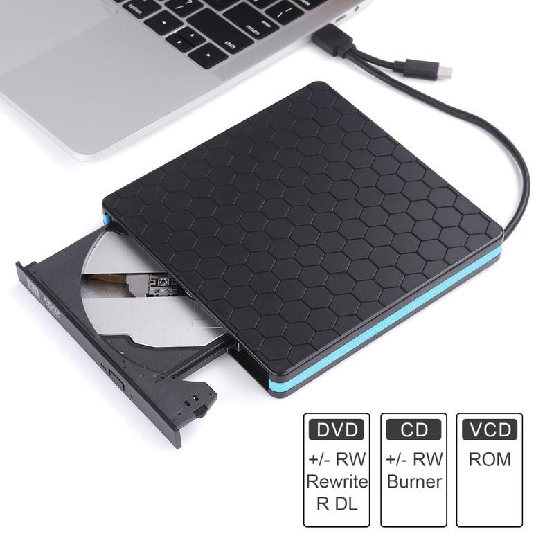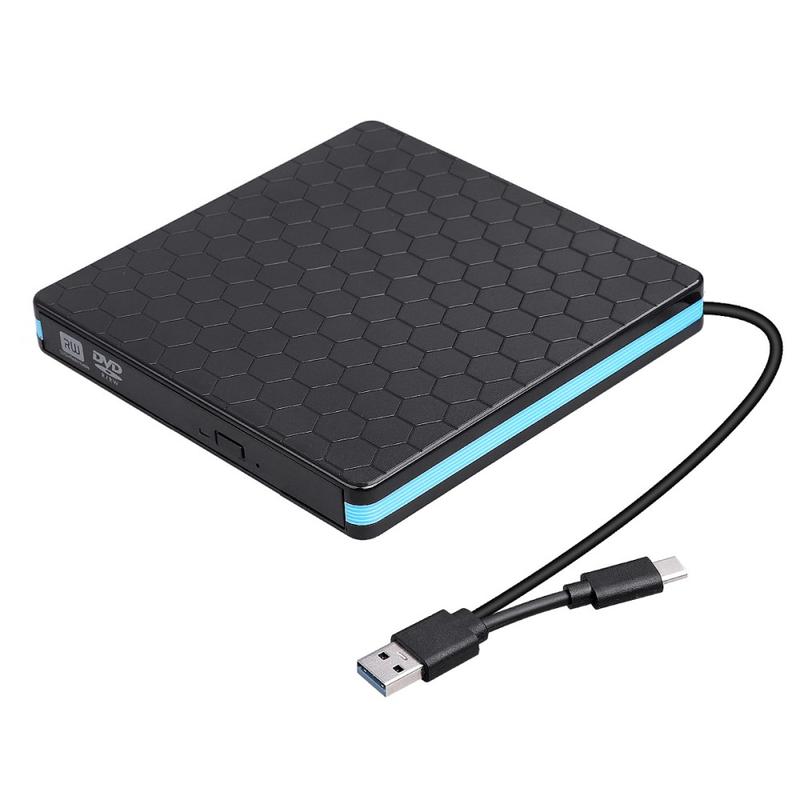Slank ekstern DVD-stasjon - omskriver, skriver, leser - USB-C / USB-A