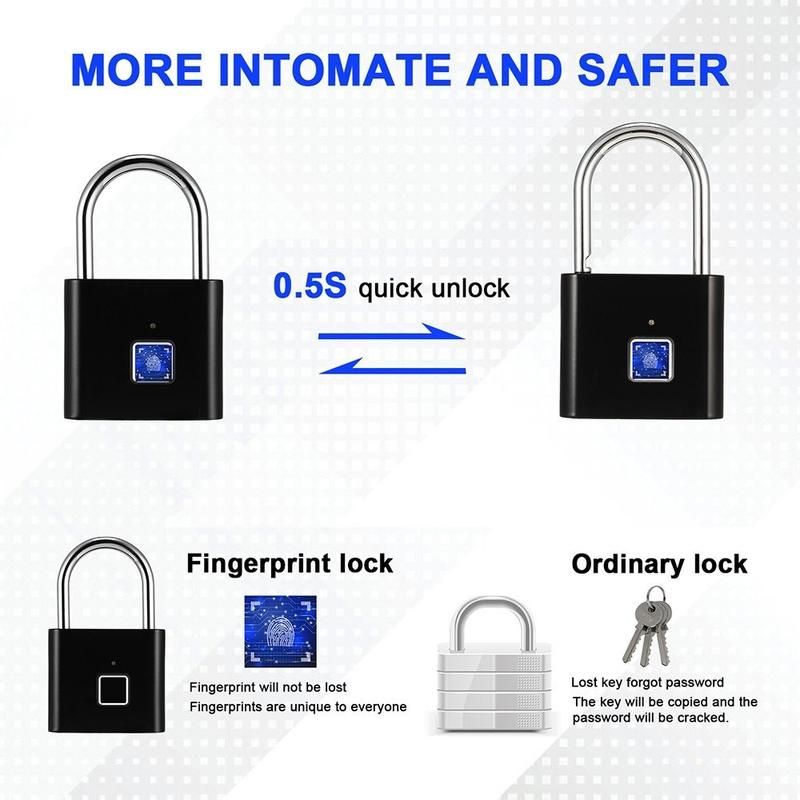 Sørg for bedre sikkerhet for dine personlige eiendeler med denne smarte fingeravtrykk-hengelåsen - en kompakt, nøkkelfri lås utviklet for praktisk bruk i hverdagen. I stedet for nøkler eller passord låses den opp med fingeravtrykket ditt, noe som gjør den til et praktisk valg for skap, ryggsekker, kofferter, garderobeskap på treningssenteret og oppbevaringsbokser.