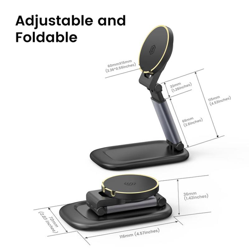 SODI BM310 Magnetic Foldable Phone Stand er et allsidig tilbehør som er designet for å forbedre smarttelefonopplevelsen din. Det har et sterkt magnetisk feste som er kompatibelt med iPhone 12/13/14/15/16-serien, noe som sikrer et solid grep. Stativet er sammenleggbart og bærbart, noe som gjør det praktisk å ha med på reise. I tillegg kan det også brukes som kamerafeste for MacBooks, noe som gir en sømløs opplevelse av videosamtaler og fotografering.