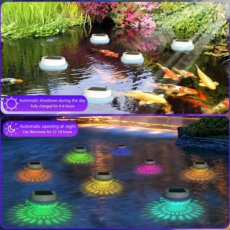 Solcelledrevet flytende bassengbelysning med fargeskiftende lysdioder