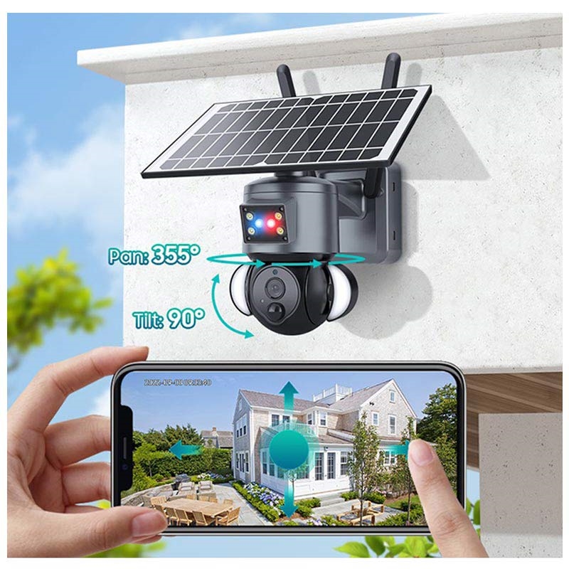 - Solcelledrevet PTZ hjemmekamera med alarm og flomlys