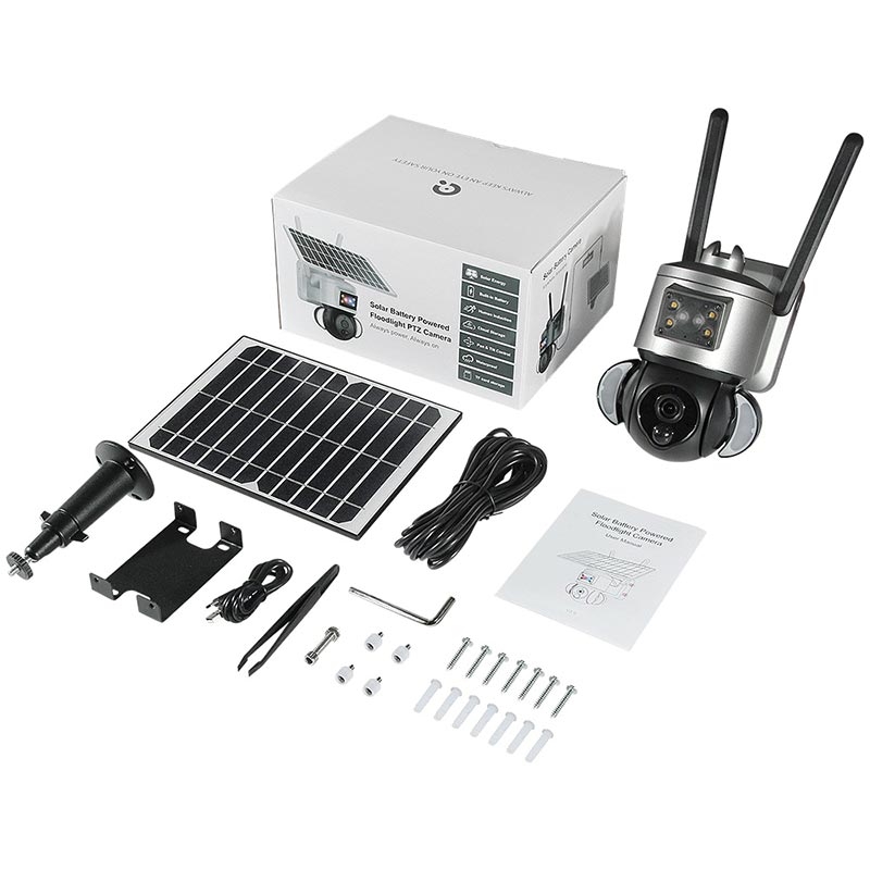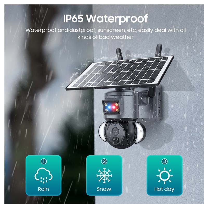 Soldrevet PTZ-overvåkingskamera med Alarmfunksjon, Flomlys, IR Nattsyn, PIR-bevegelsesdetektor S528 - IP65, WiFi, 3MP