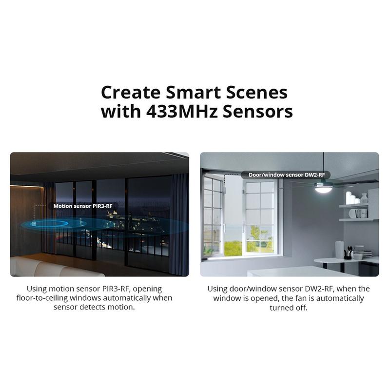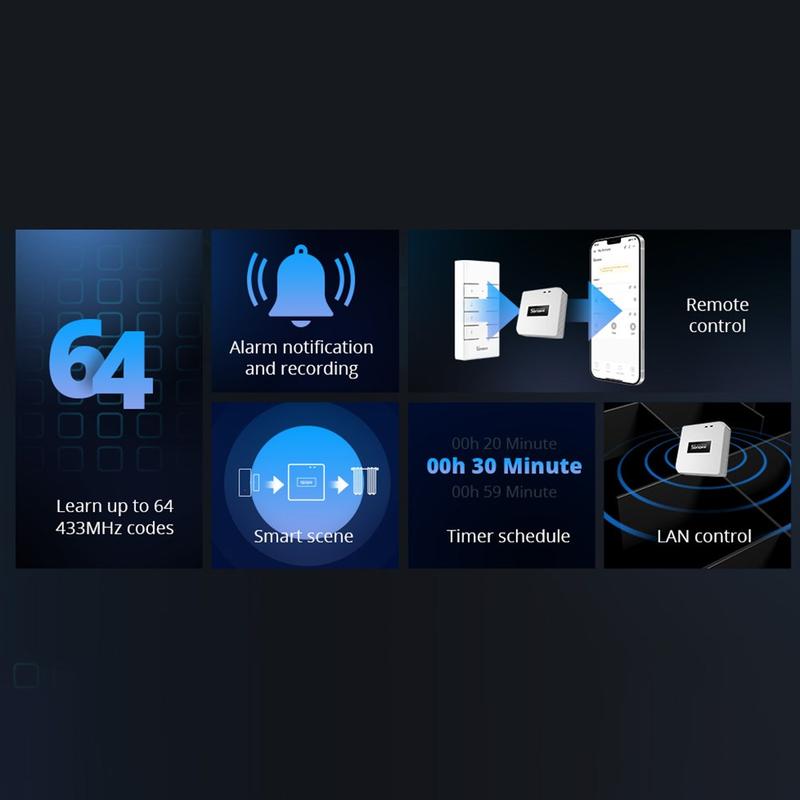 - Kan legge til opptil 64 Sonoff RF 433MHz-enheter for utvidet smart hjem-dekning