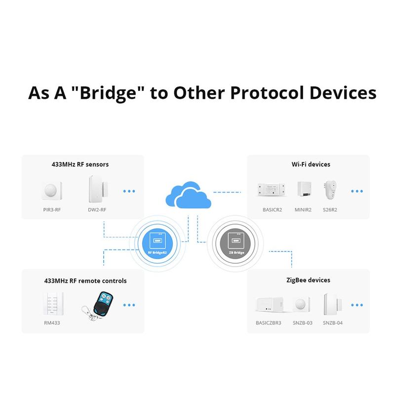 RF BridgeR2 er en smart oppgradering hvis du allerede bruker 433MHz RF-sensorer eller fjernkontroller og ønsker enklere kontroll og automatisering. Den hjelper med å samle RF-enheter i eWeLink-appen, støtter scener og varsler for sikkerhet, og gir fleksibilitet med tidtakere og deling. En praktisk måte å utvide ditt smarte hjem uten å erstatte eksisterende RF-utstyr.