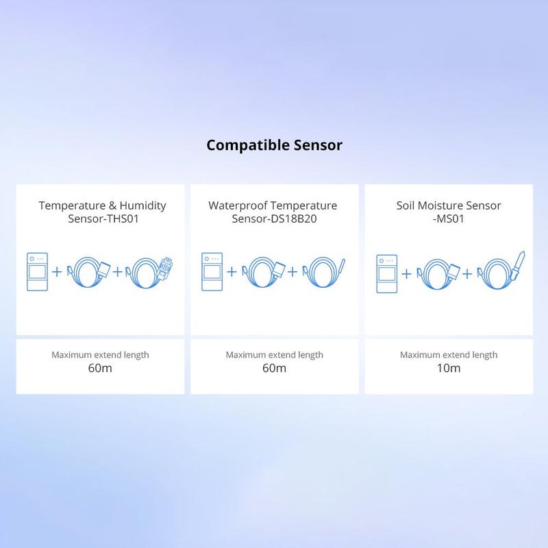 - Fungerer med Sonoff RJ11-sensorer som THS01 og DS18B20 med RJ11-kontakt