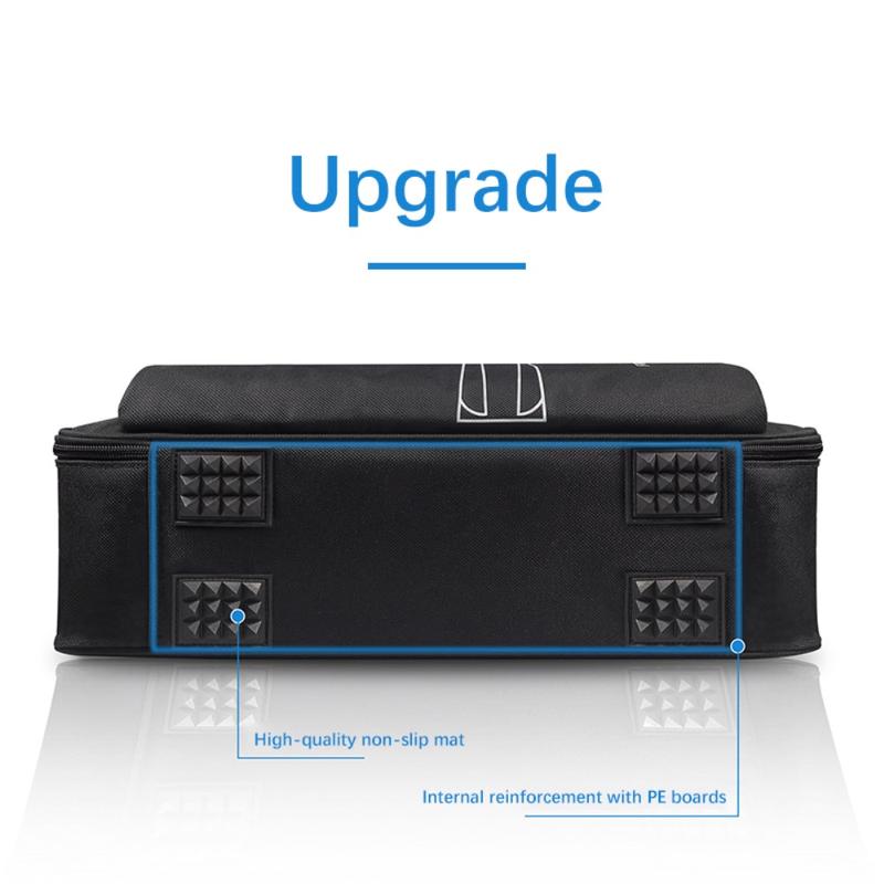 - Stor kapasitet: Dobbeltlagsdesign med et ytre rom for spillkontrollere og mindre tilbehør som HD-kabler og konsollkabler. Det indre rommet har plass til konsolldisken, spillkort, fjernkontroll, ladestasjon og mer.