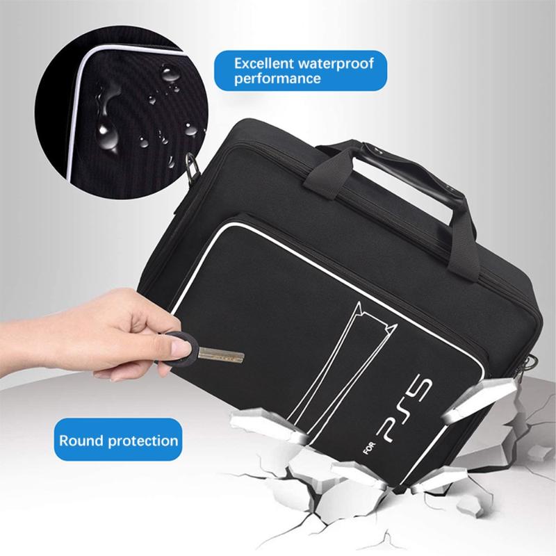 Denne bærevesken kombinerer funksjonalitet med stil, og tilbyr en pålitelig løsning for transport av PS5-konsollen og tilbehøret ditt. Den slitesterke konstruksjonen og gjennomtenkte designen sørger for at spillutstyret ditt forblir trygt og organisert under reisen.