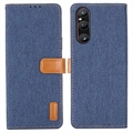 Sony Xperia 1 V Børstet TPU Deksel - Karbonfiber - Blå