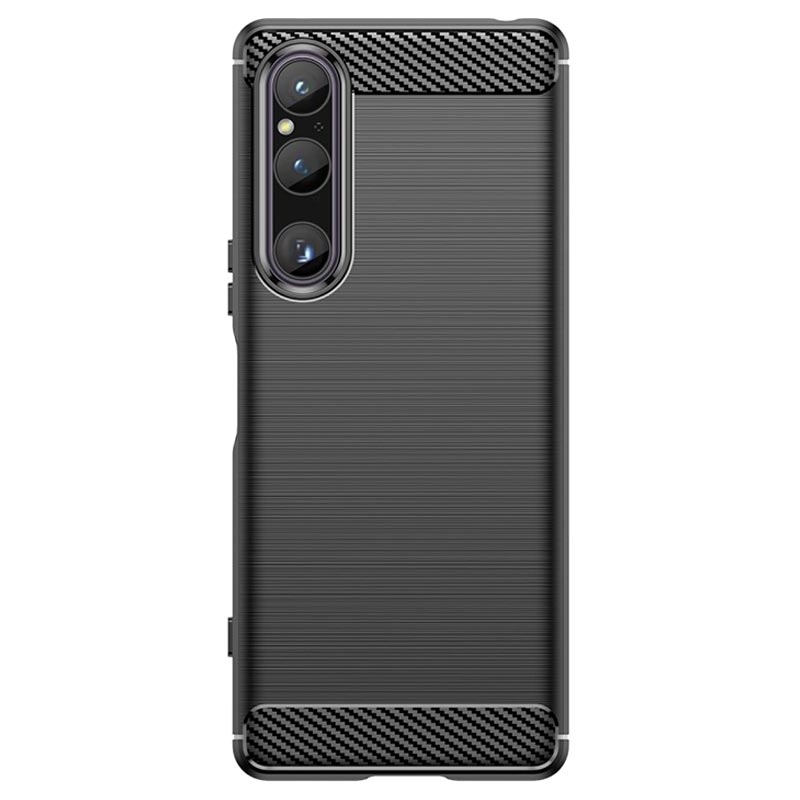 - Børstet TPU-deksel med karbonfibertekstur til Sony Xperia 1 V