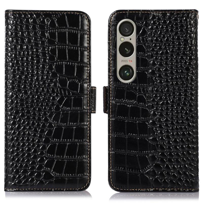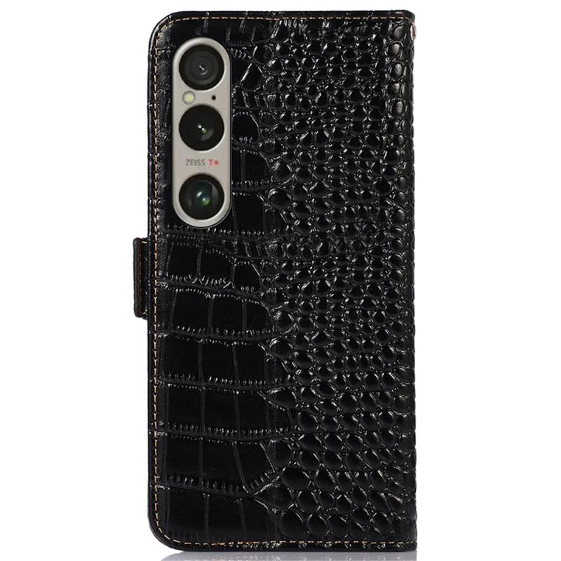 Crocodile Series Lommebok-deksel i Lær med RFID til Sony Xperia 1 VI