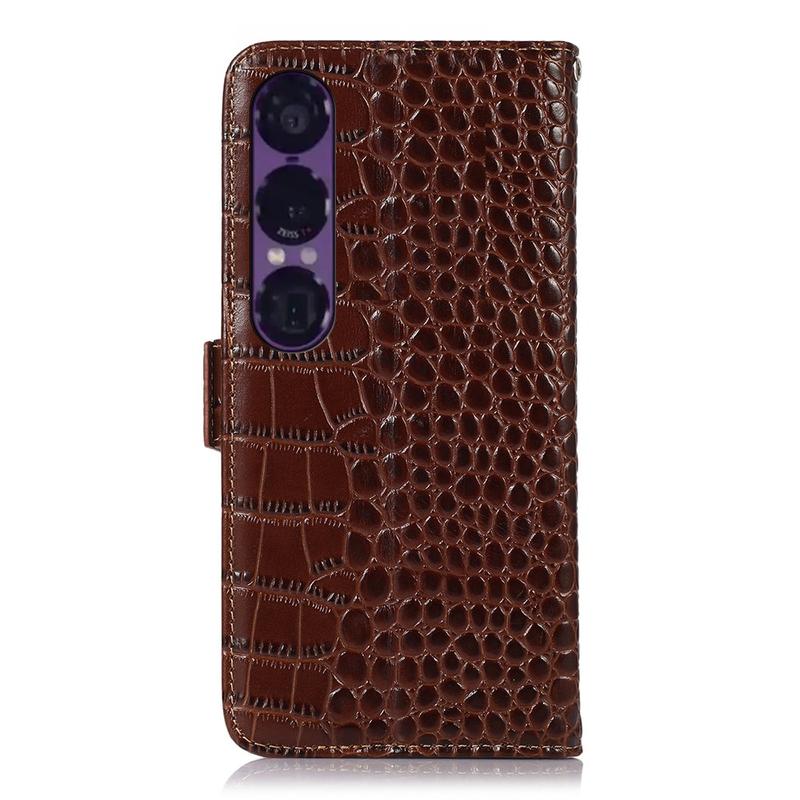 Crocodile Series Lommebok-deksel i Lær med RFID til Sony Xperia 1 VII