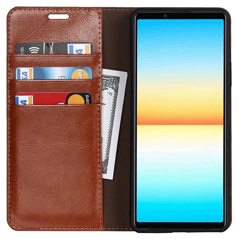 Lommebok-deksel i Lær med Stativ til Sony Xperia 10 IV