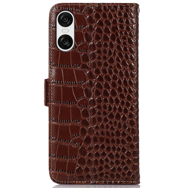 Crocodile Series Lommebok-deksel i Lær med RFID til Sony Xperia 10 VI