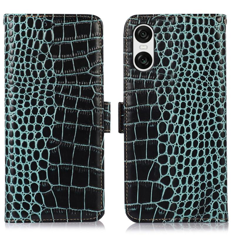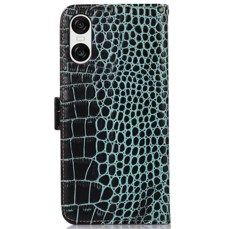 Crocodile Series Lommebok-deksel i Lær med RFID til Sony Xperia 10 VI