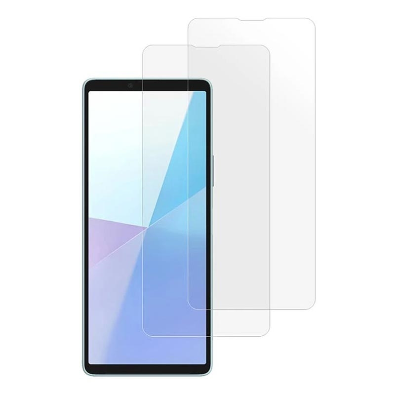 Pakken inkluderer to Saii Premium-skjermbeskyttere i herdet glass for Sony Xperia 10 VI.