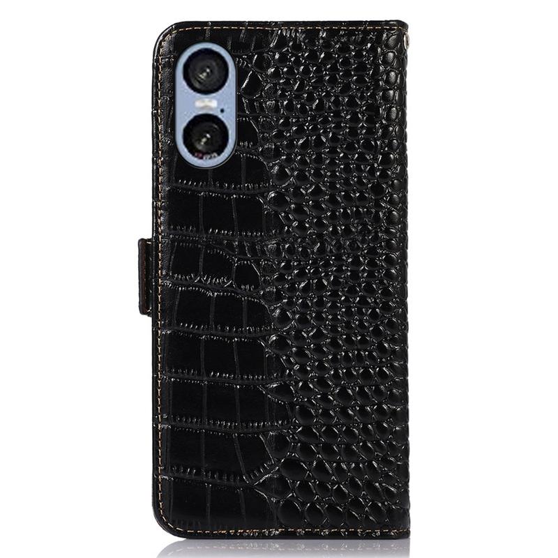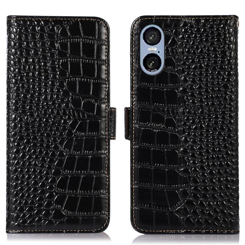 Crocodile Series Lommebok-deksel i Lær med RFID til Sony Xperia 5 VI