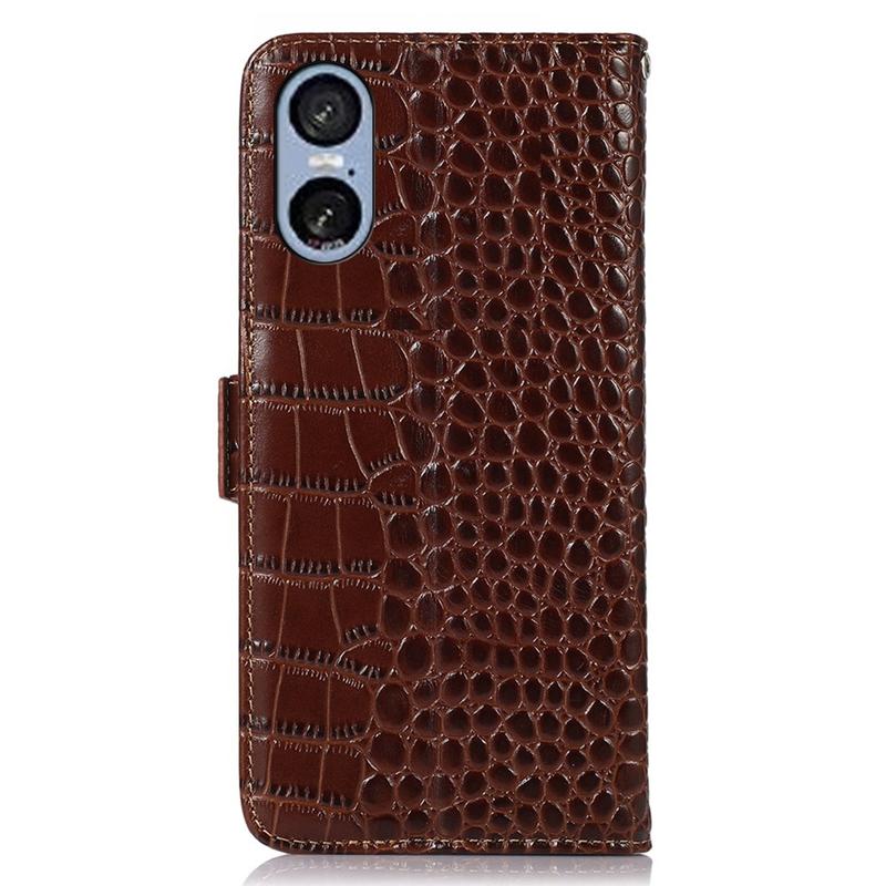 Crocodile Series Lommebok-deksel i Lær med RFID til Sony Xperia 5 VI