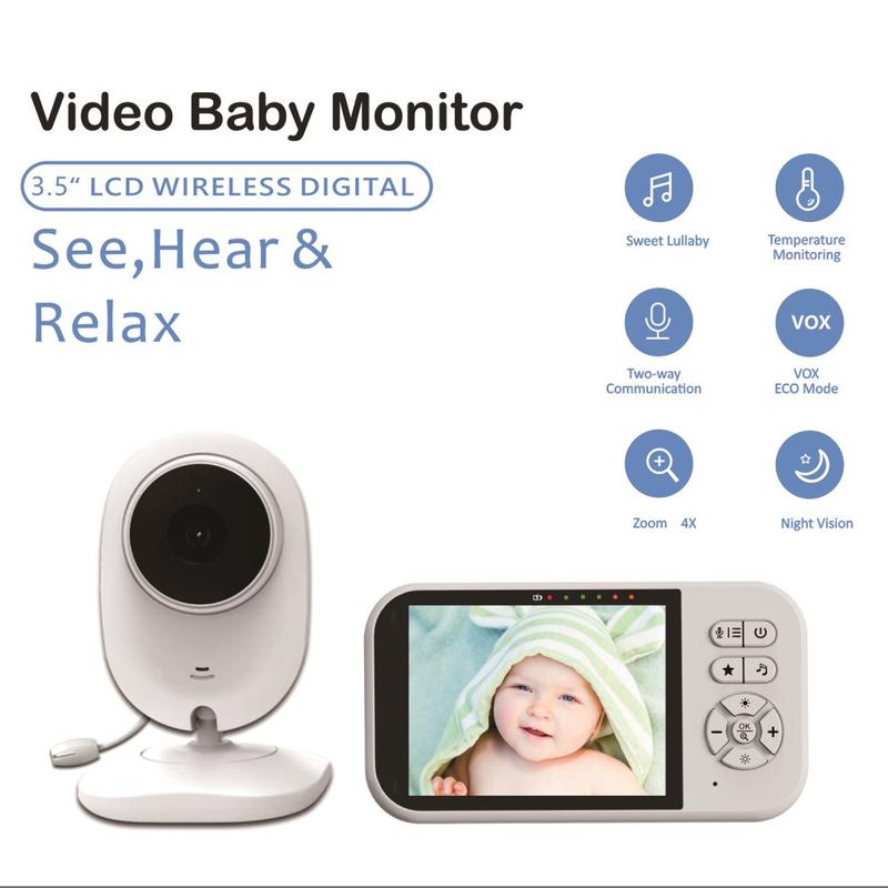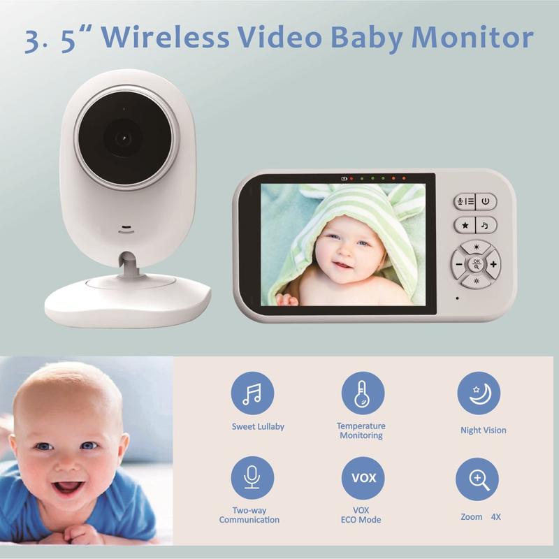 SP316 3.5-tommers babymonitor - toveis lydintercom, nattsynskamera, VOX-modus og vuggesanger - EU-plugg