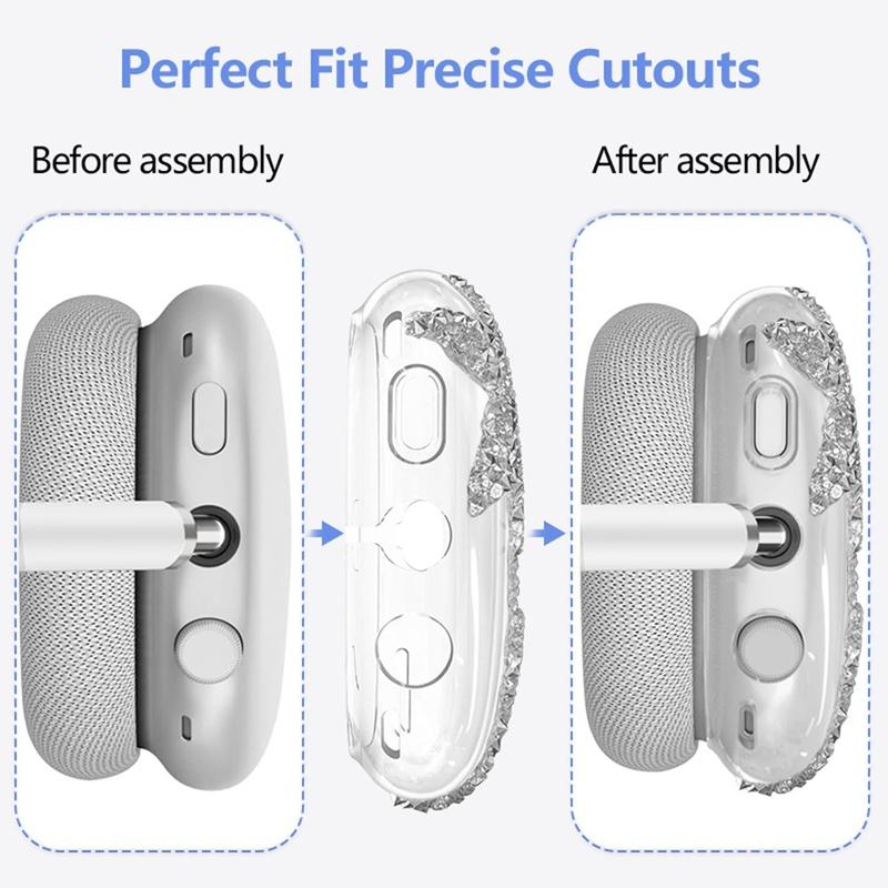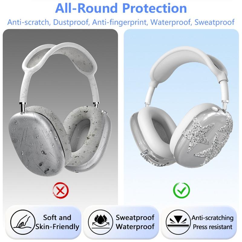 Gi dine AirPods Max et blendende lag med beskyttelse med dette elegante, glitrende stjernedesignet. Dette silikonsettet består av et hodebåndsdeksel, et ørepropphylster og et øreputedeksel, og beskytter alle viktige deler av hodetelefonene dine mot slitasje. Nyt både stil og funksjonalitet uten å gå på kompromiss med komfort eller lydkvalitet.