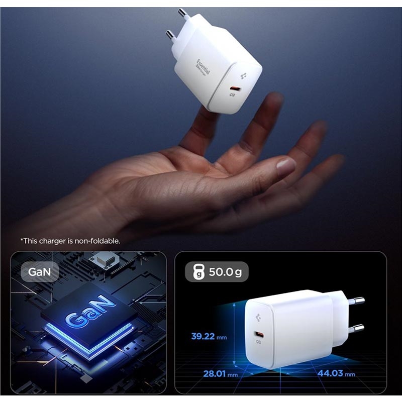 Spigen EE201EU Essential Charger tilbyr 20W hurtiglading for smarttelefoner og andre USB-C-enheter. Denne kompakte og bærbare laderen er designet for å være effektiv, og gir deg rask strøm hjemme eller på farten. Med innebygde sikkerhetsfunksjoner beskytter den enhetene dine mot overlading, overoppheting og kortslutning, noe som gjør den til en pålitelig og effektiv ladeløsning.