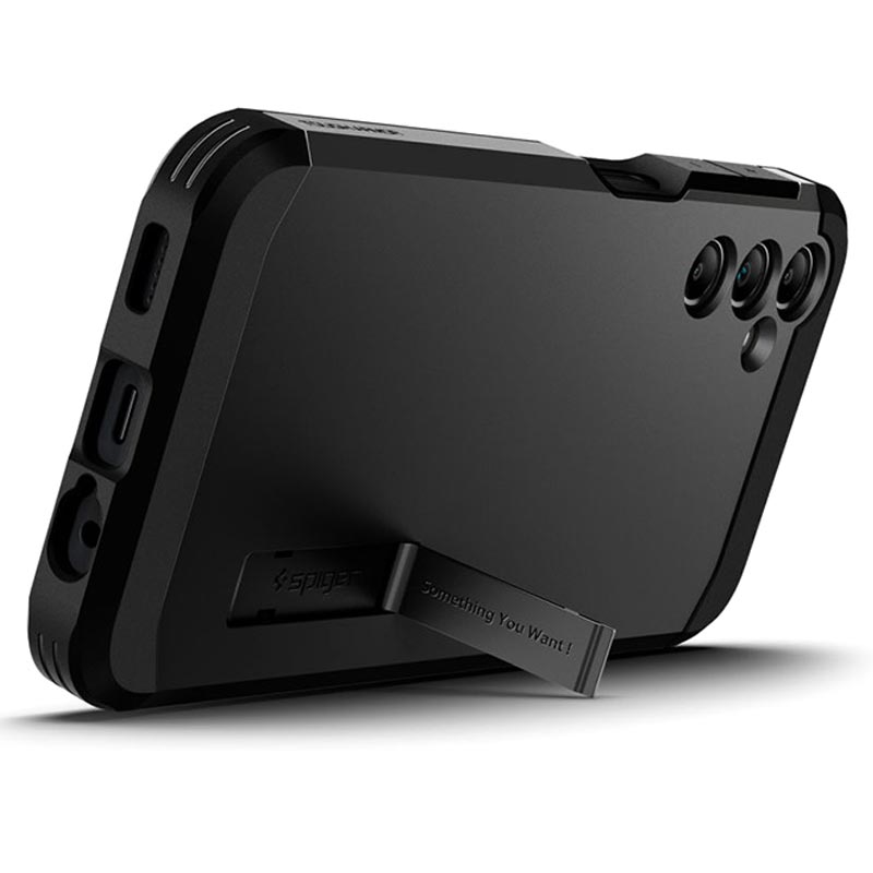 Spigen Tough Armor Samsung Galaxy A14 Cover - Sort er ideelt for daglig bruk, spesielt for de som arbeider i krevende miljøer eller har en aktiv livsstil. Det er perfekt for utendørsaktiviteter som fotturer, sykling og camping, hvor telefonen kan være utsatt for støt og fall. Den innebygde kickstanden gjør det også ideelt for å se videoer eller delta i videosamtaler uten å måtte holde telefonen.