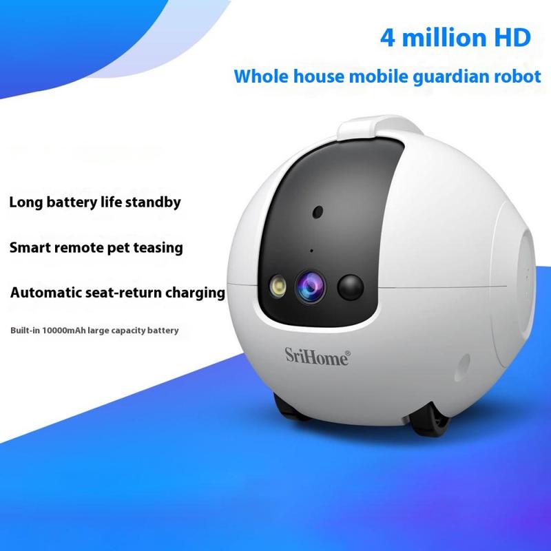 SRIHOME DH013 AI Smart kamerarobot for Kjæledyrmonitor med ladestasjon - Smart AI-interaksjon, 360-graders visning, nattsyn i fullfarge, toveis lyd og 10000 mAh batteri