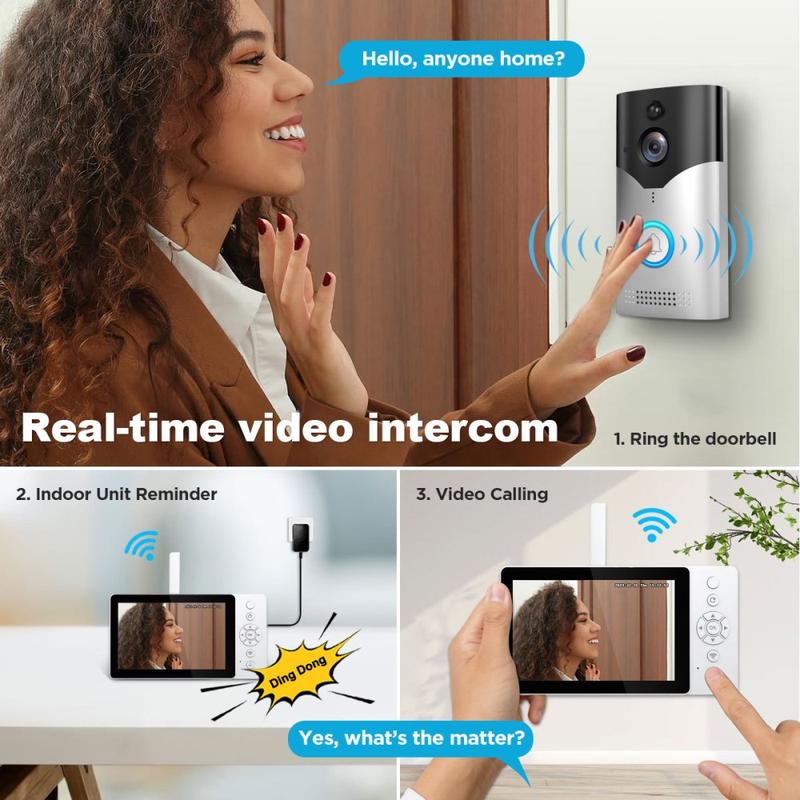 Forbedre sikkerheten i hjemmet med SRIHOME DH051_002_008 Smart trådløst dørklokkesett, en moderne og energieffektiv løsning for praktisk kommunikasjon og overvåking. Med et 4MP HD-videosystem, WiFi 6-tilkobling og en 5-tommers fargeskjerm sikrer det klare bilder og jevn ytelse. Med toveis lyd, støtte for flere dørklokker eller kameraer og lokal nettverksfunksjonalitet, gir dette systemet pålitelig drift selv under strømbrudd. Ideell for husholdninger som ønsker smart, sikker og brukervennlig intercom-funksjonalitet.