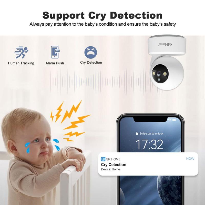 SriHome SH064 8MP innendørskamera med sporing av mennesker og deteksjon av gråt