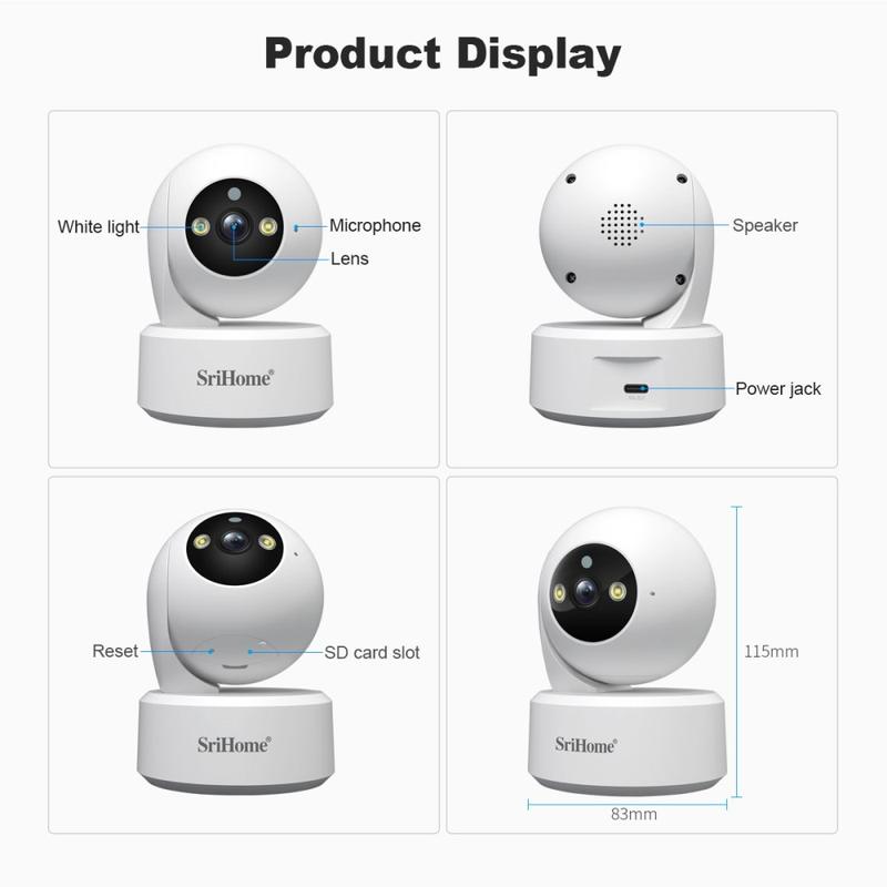 Gjør en kompakt linse om til en fullverdig romvakt. SriHome SH064 tar opp i knivskarp 2160P, følger bevegelser automatisk og varsler deg til og med når en baby begynner å gråte. Koble den til, koble til 2,4 GHz eller 5 GHz Wi Fi, og nyt vidvinkelsikkerhet dag og natt.