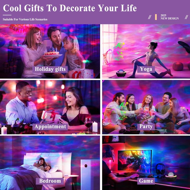 I stedet for å sjonglere med separate nattlys, høyttalere og dekorlamper, kombinerer SSL001-C alle tre i et elegant ABS + PVC-skall. Du får trådløs lyd, tilpassbar belysning og stjerneprojeksjoner - uten ekstra støpsler eller kabler.