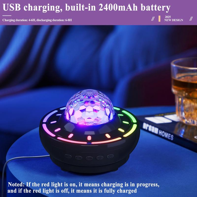 SSL001-C Bærbar stjerneprojektorlampe - 12-modus RGB, Bluetooth 5.0-høyttaler og 2 400 mAh USB-oppladbart batteri