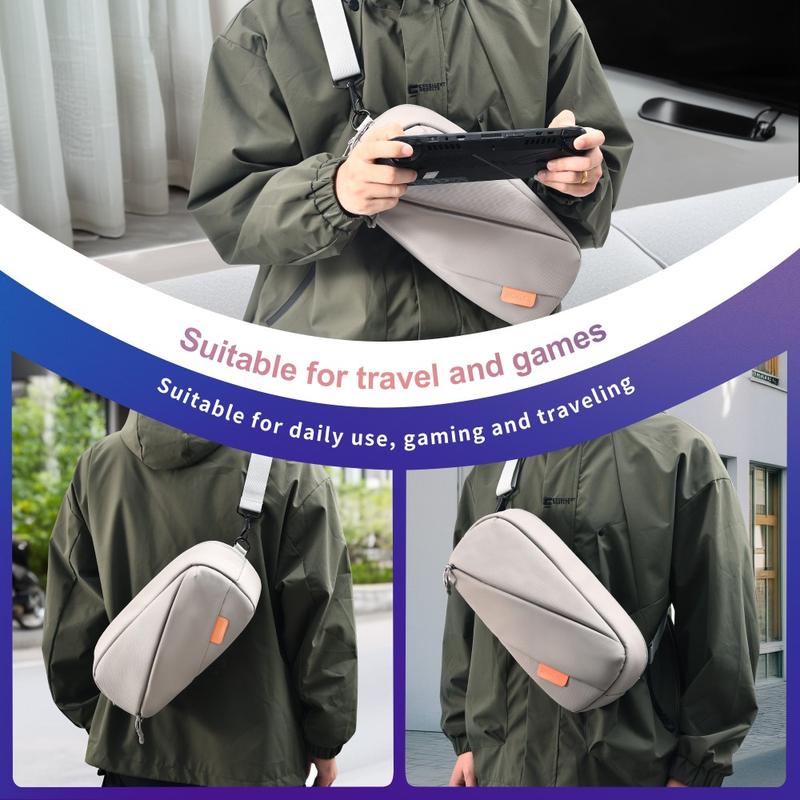 STARTRC GAMES Carrying Bag er en allsidig og slitesterk oppbevaringsløsning for håndholdte spillkonsoller, med et elegant design. Denne støtsikre vesken er laget av høykvalitets polyuretan med hardt fôr, og er kompatibel med enheter som Steam Deck, Nintendo Switch og mer. Vesken har dobbel glidelås for enkel tilgang og en avtakbar skulderrem som gjør den lett å ta med seg.