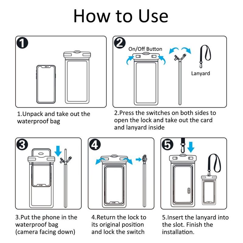 IPX8 vanntett, nedsenkbar til 30 meters dyp i 0,5 timer, perfekt for bassenger, strender, fiske, svømming, seiling, ski, båtliv, kajakkpadling, snorkling, tubing, rafting, dusj, badstue og andre vannparkaktiviteter, og holder telefonen og lommeboken helt tørr og trygg