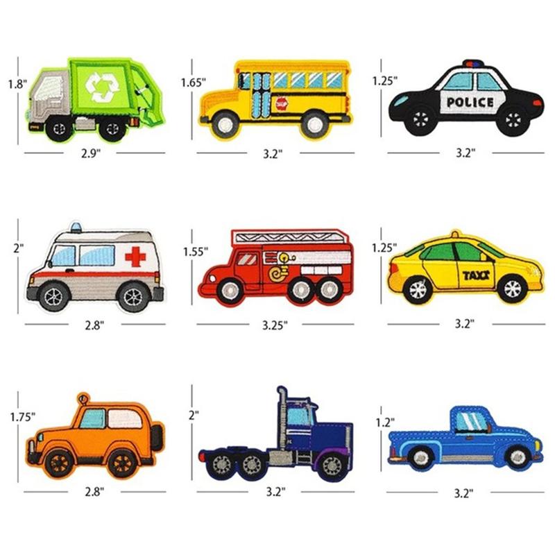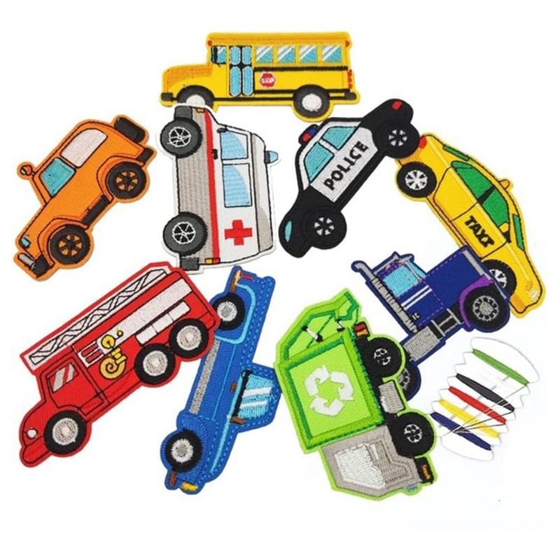 Gi din personlige stil et løft eller reparer slitte plagg med dette settet med broderte lapper med tegneserielastbiler. Hver lapp er laget av polyester og bomullssilke av høy kvalitet og har en slitesterk varmeforseglet bakside som gjør det enkelt å stryke eller sy på. Disse livlige lappene er designet for å dekke flekker eller hull, og gir klær, vesker og annet et iøynefallende innslag av kreativitet.