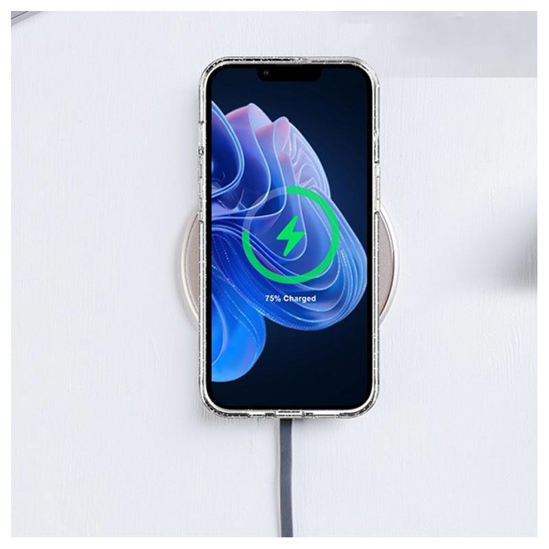 Det attraktive TPU-dekselet fra Stylish Glitter-serien vil få din iPhone 14 til å skinne. Dette tynne og lette dekselet er laget av fleksibelt og slitesterkt TPU-materiale som holder din iPhone 14 trygg mot riper og bulker uten kompromisser. En gjennomsiktig design beriket med glitrende pulver vil gi glamour til din iPhone 14.