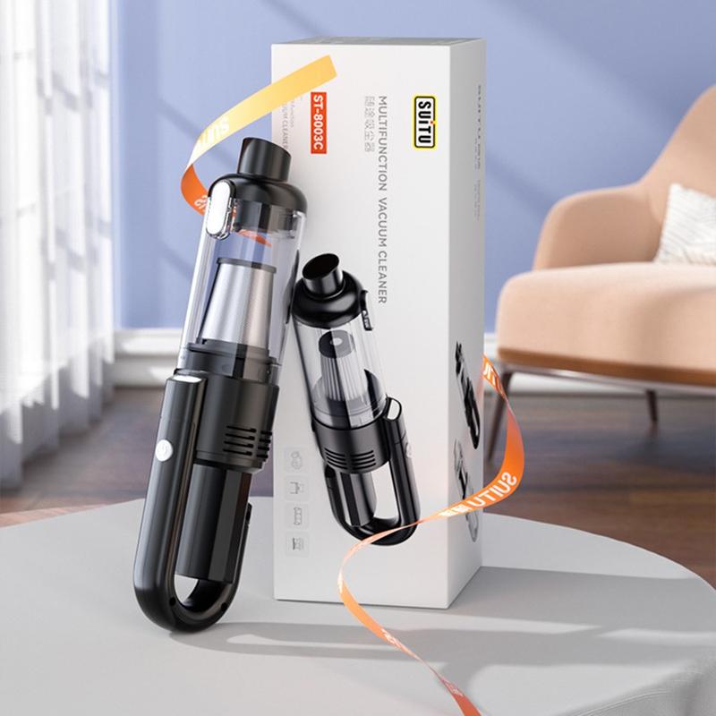 SUITU ST-8003CG bærbar støvsuger er en kraftig og praktisk håndholdt rengjøringsløsning designet for både kjøretøy og hjemmebruk. Med en sugekraft på 6000 Pa og en motor på 38 000 o/min fjerner den effektivt støv, smuss, smuler og til og med væsker, takket være våt- og tørrfunksjonalitet. Den kompakte designen og de medfølgende gulvbørstene og munnstykkene gjør den allsidig for ulike rengjøringsscenarier, fra bilinteriør til husholdningsoverflater. Den drives av et dobbelt 2000 mAh litium-ion-batteri, som gir opptil 17 minutters kontinuerlig bruk på én lading. USB-C-hurtigladingssystemet lader den helt opp på bare 3-4 timer, mens det ergonomiske ABS-kabinettet sørger for holdbarhet og komfort under bruk.