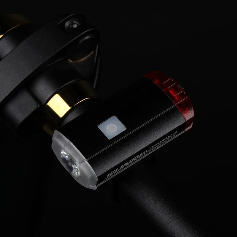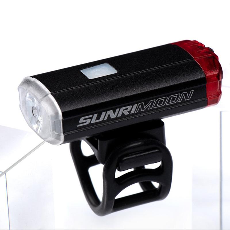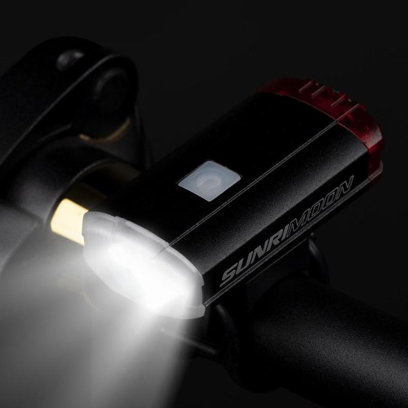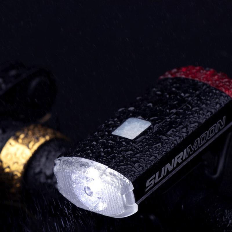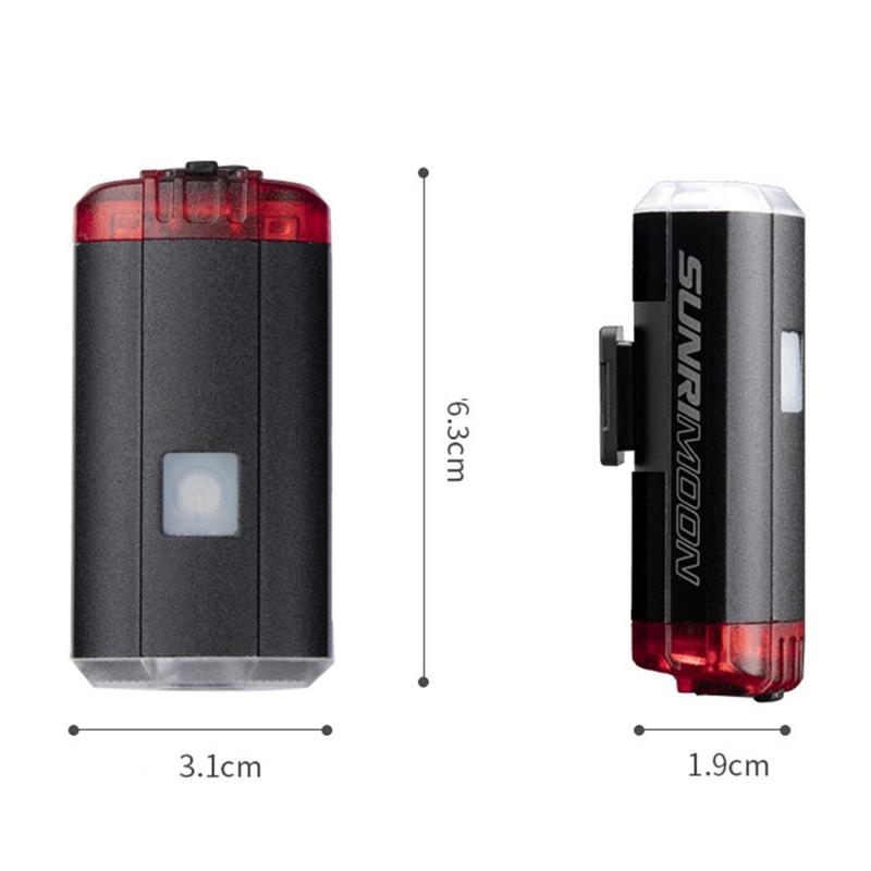 SUNRIMOON Vanntett LED-sykkelbelysning USB oppladbar lampe 100 lumen front-/baklykt sykkelhjelmlampe