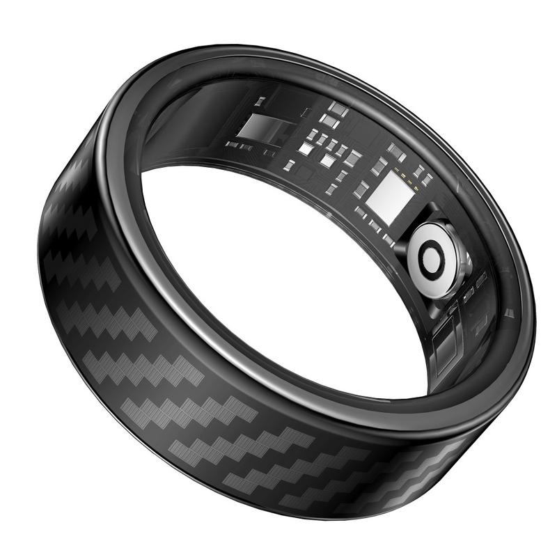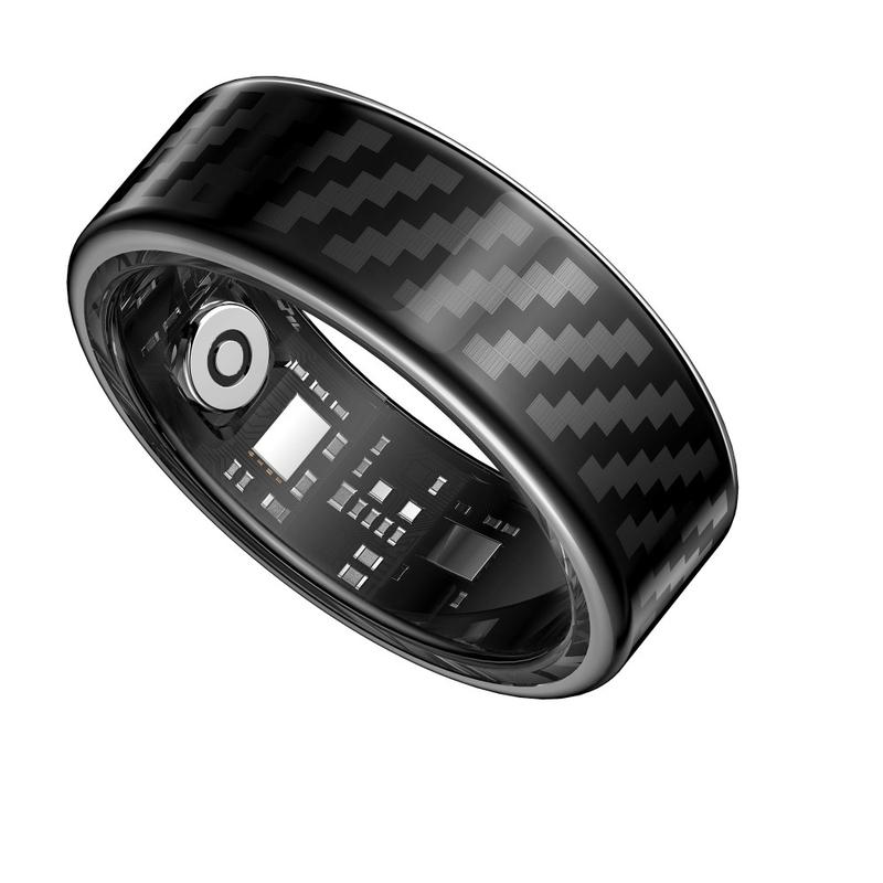 SY02 Smartring med karbonfibermønster - søvn-, oksygen- og hjertefrekvensmåler med trådløst ladeetui