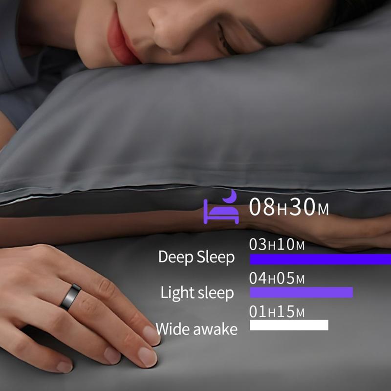 Sett avansert helseteknologi på fingeren din. SY02 Smart Ring kombinerer et elegant karbonfibermønster med sensorer av medisinsk kvalitet som sporer oksygenmetning i blodet (SpO2), kontinuerlig hjerterytme og søvnstadier - 24 timer i døgnet, selv under vann. Et ladeetui i lommeformat gir hele fem dagers normal bruk med én times lading, og med smarte bevegelseskontroller kan du bla gjennom sosiale medier eller ta bilder uten å berøre telefonen. Lett rustfritt stål (≈ 4 g / 0,004 kg) og et gel-fylt indre gjør den komfortabel nok til at du glemmer at du har den på deg - men samtidig kraftig nok til å holde deg informert, motivert og tilkoblet.