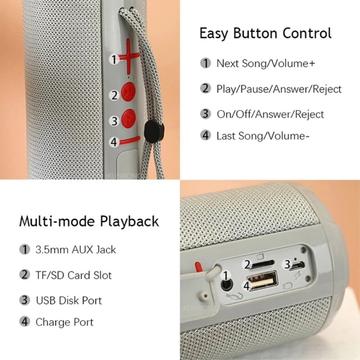 T&G TG621 bærbar TWS Bluetooth-høyttaler med TF-kort og FM utendørs vanntett, trådløs subwoofer (CE-sertifisert) - grå
