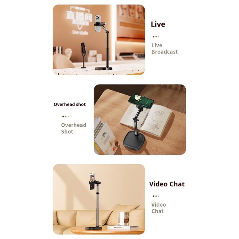 - Stabilt skrivebordsdesign - Spesialdesignet for skrivebordsoppsett, som gir en sikker plattform for smarttelefonen din under filming eller videosamtaler.