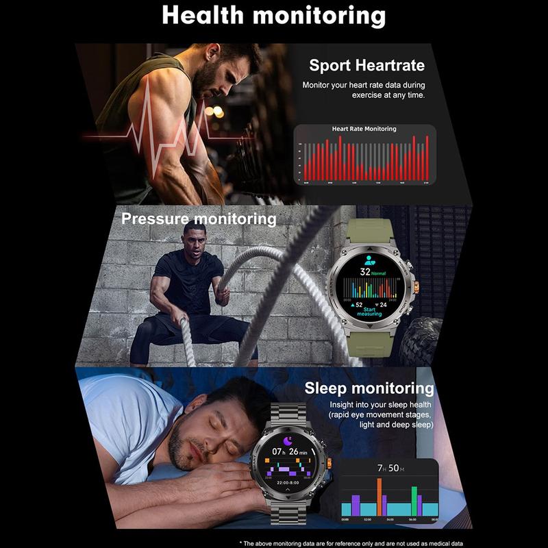 T53 1,43" AMOLED smartklokke med Bluetooth-samtaler - IP68 vanntett sportsklokke, puls-, blodtrykks- og SpO2-overvåking, 400 mAh