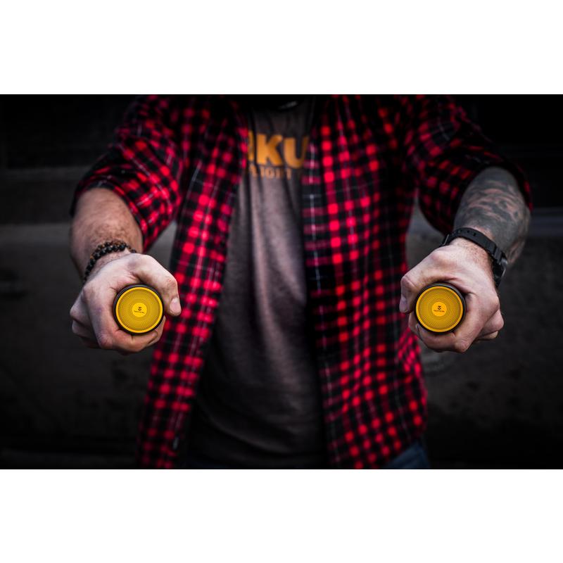 StrikeBase Bravo Bluetooth-høyttaler måler bare 48x53 mm og veier bare 225 g, noe som gjør den til det perfekte reisefølge. Det robuste metallhuset garanterer pålitelig ytelse på alle dine eventyr eller hageturer.