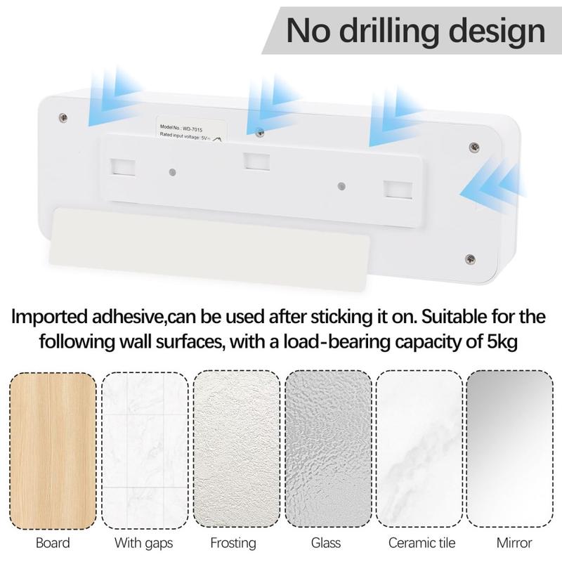 - Veggmontert design - Enkel selvklebende installasjon sparer plass, krever ingen boring og beskytter baderomsveggene.