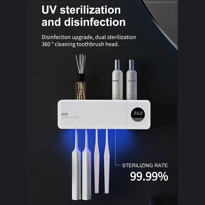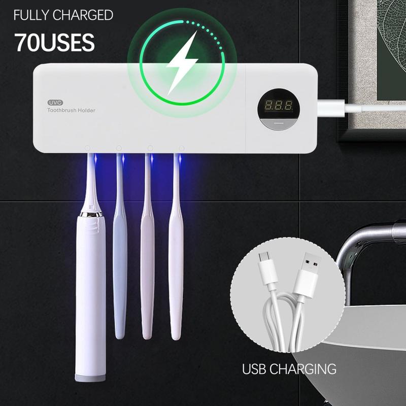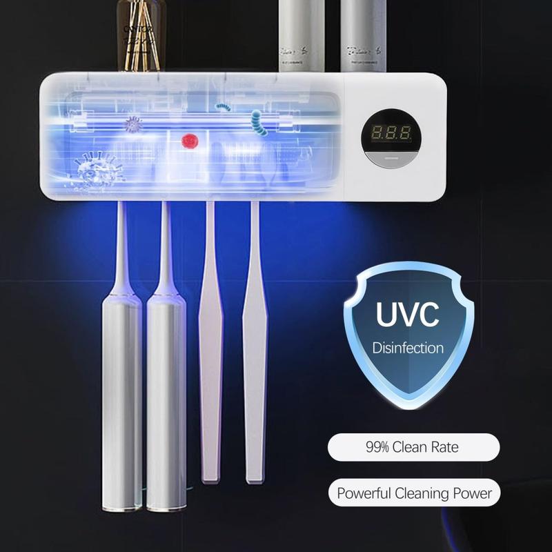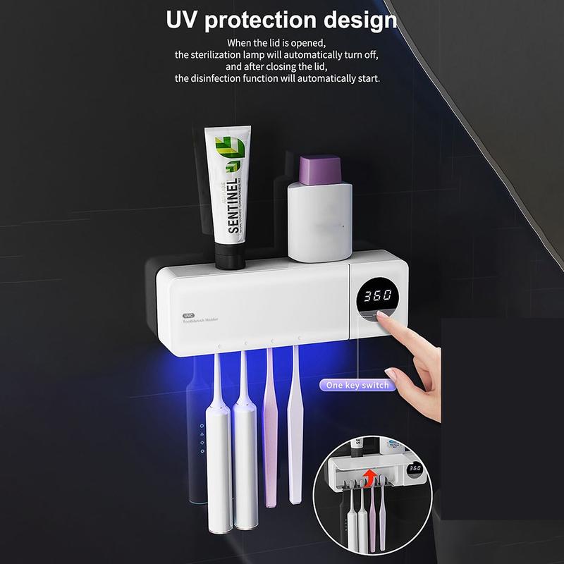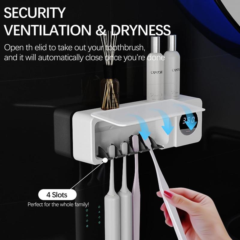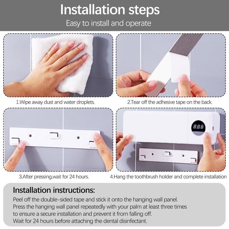 Tannbørste-desinfiseringsapparat UV-sterilisator - veggmontert tannbørsteholder med automatisk sensor og digitalt display