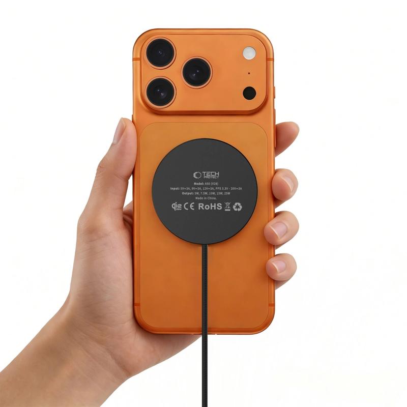 Lad telefonen raskere og mer praktisk med den magnetiske trådløse laderen Tech-Protect A50. Denne kompakte laderen støtter den nyeste Qi2.2-standarden og gir opptil 25W trådløs lading for kompatible enheter, mens den innebygde magnetiske holderen sørger for at telefonen ligger perfekt på plass for stabil og effektiv lading.